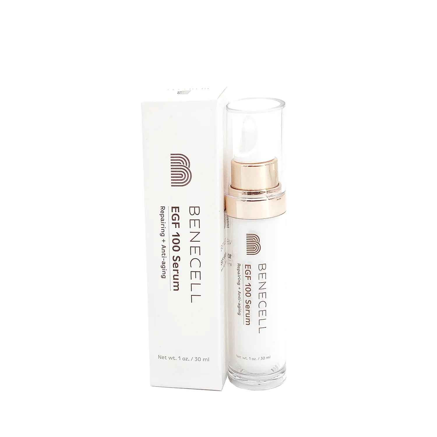 BENECELL EGF 100 Serum is a powerful anti-aging serum (100 ppm) that restores youthful radiance, minimizes signs of aging, and repairs compromised skin. Its firming formula works intensively to regenerate any skin damage, making it ideal for use after sunburn or laser treatments.